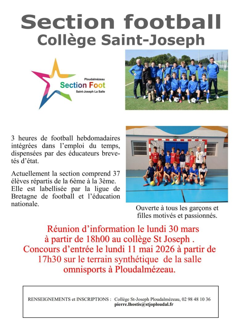 Réunion d’information Section Football lundi 30 mars 18h Collège St Joseph